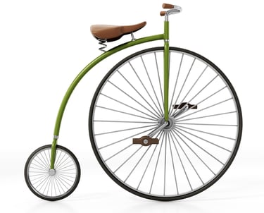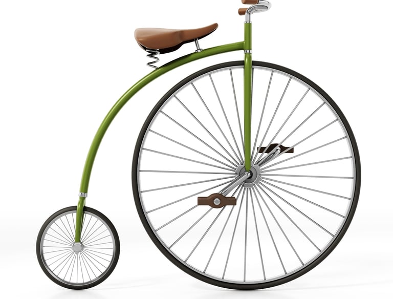 U potrazi za većom brzinom, dizajneri su stvorili "high-wheeler" ili "penny-farthing". Ovi bicikli su imali masivan prednji točak i vrlo mali zadnji točak. Iako brži, bili su nestabilni i opasni za vožnju.